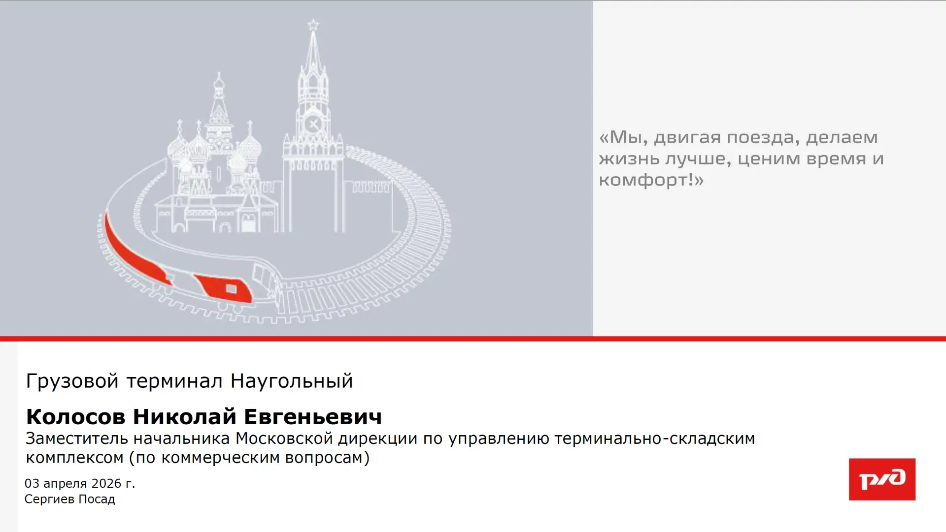 2 недели назадЦелью совещания стало обсуждение реализации мероприятий Концепции пространственного и социально-экономического развития города Сергиев Посад в части перевода грузового терминала ОАО «РЖД» из исторической части города и организация деятельности нового грузового терминала железнодорожной станции «Наугольный», а также реконструкции существующей пассажирской инфраструктуры со строительством конкорса.